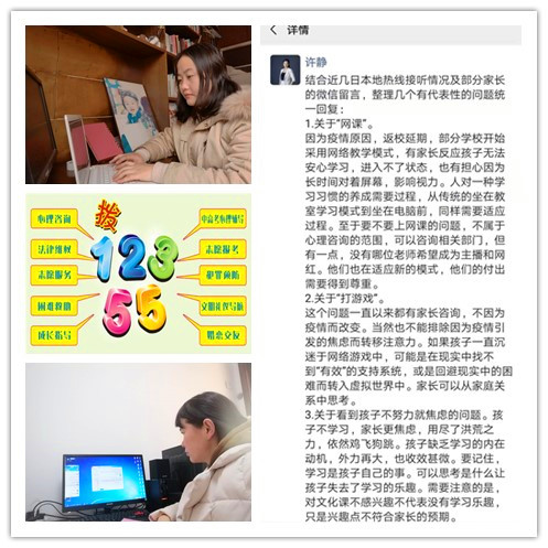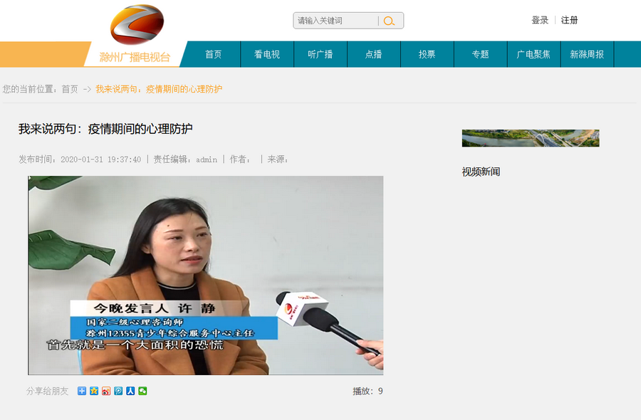 热线自1月27日开通以来,30名疫情心理援助志愿者采取轮流值守、在线服务的方式,坚持24小时不间断服务,全天候为来电的青少年提供全市防疫整体情况、定点治疗医院、疫情辟谣等方面的咨询,为新冠肺炎患者、超负荷运转的前线工作人员和遇到心理危机的青少年提供心理疏导服务。1月28日,滁州12355青少年综合服务中心主任、二级心理咨询师许静还做客滁州电视台《我来说两句》栏目,就“疫情期间的心理防护”话题为广大市民答疑解惑。