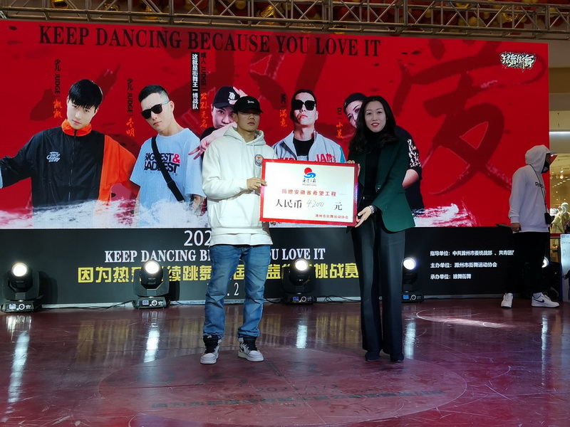 此外,在活动现场,团市委和滁州市街舞运动协会一起将比赛所收取的4200元报名费全部捐赠给了安徽省希望工程,用于贫困留守儿童的关爱、助学等活动。