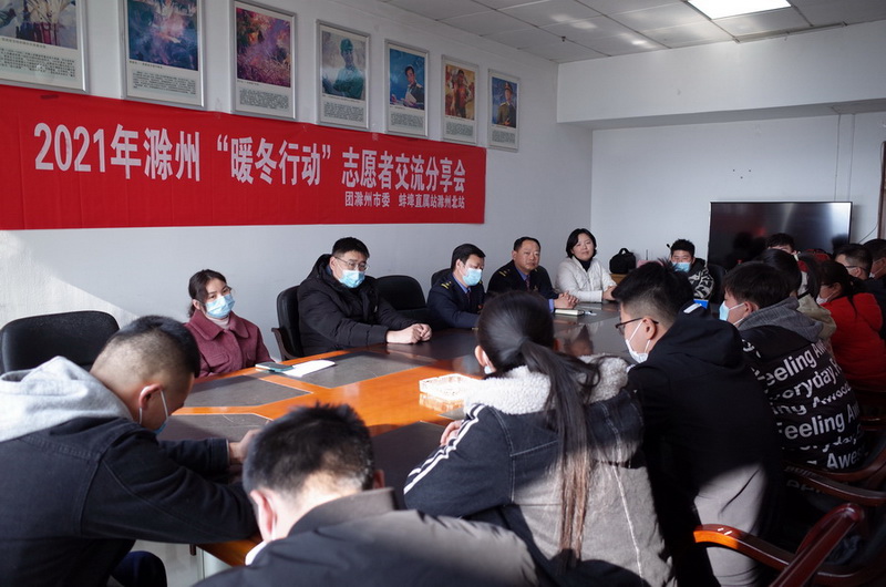 为认真总结春运期间“暖冬行动”青年志愿者工作,分享交流志愿服务心得,听取志愿服务意见建议。2月24日下午,2021年滁州“暖冬行动”志愿者交流分享会在滁州北站举行,部分青年志愿者代表参加活动,滁州北站站长朱怀宝、团市委宣传部部长张勇参加交流分享。