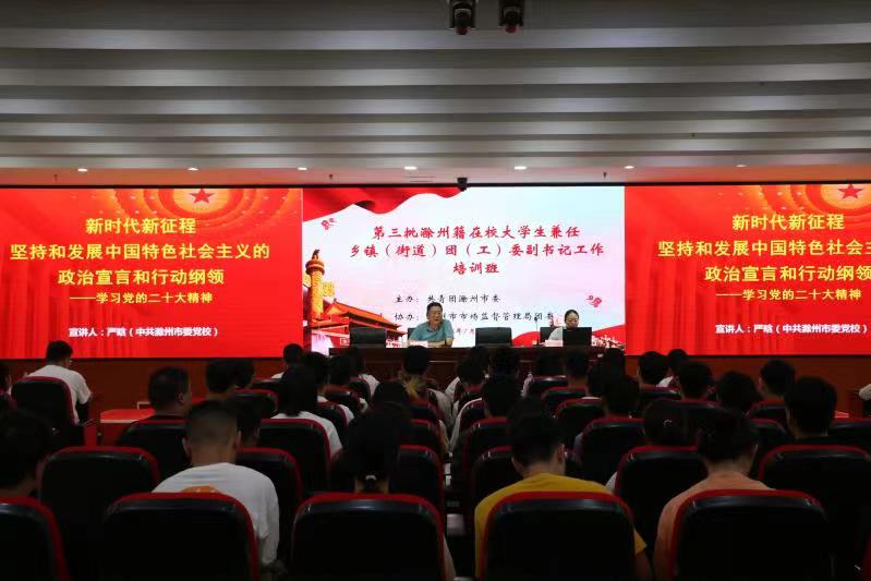 培训班上,滁州市委党校严晗老师讲授党的二十大精神,琅琊区清流街道紫薇社区团支部书记林静讲解该社区共青团项目化运行情况,团市委组织部对共青团基础团务进行辅导、并部署精品项目大赛暨青年之家优秀项目评选工作。