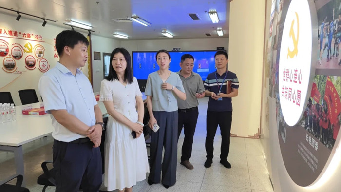 在中科创谷滁州创新基地,调研组了解了项目移交、基地运行和招商等方面情况,就非公企业团建、大学生和青年人才创新创业、载体提供和政策赋予等方面与基地负责同志进行了深入座谈交流,达成初步合作意向。