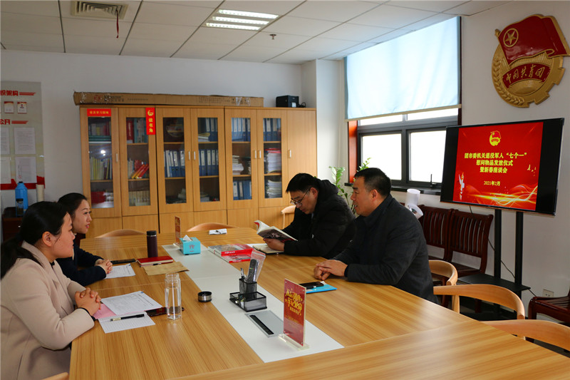 2月1日上午,团市委召开机关退役军人新春座谈会。会议由团市委副书记、机关党支部书记戴莺主持,团市委党组书记、书记孙静参加活动并与机关退役军人谈心谈话。